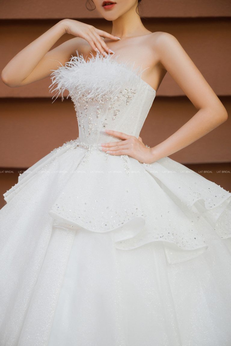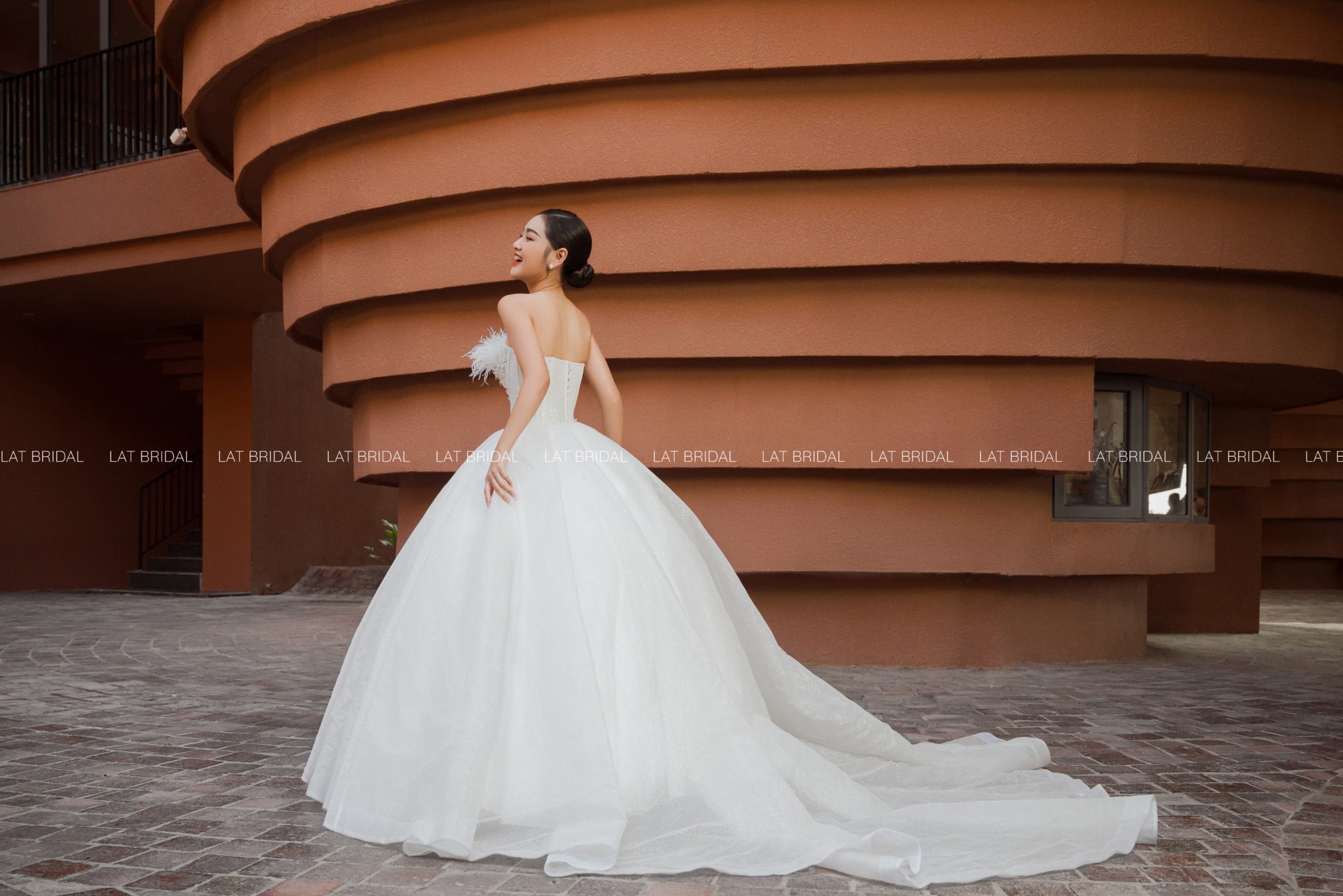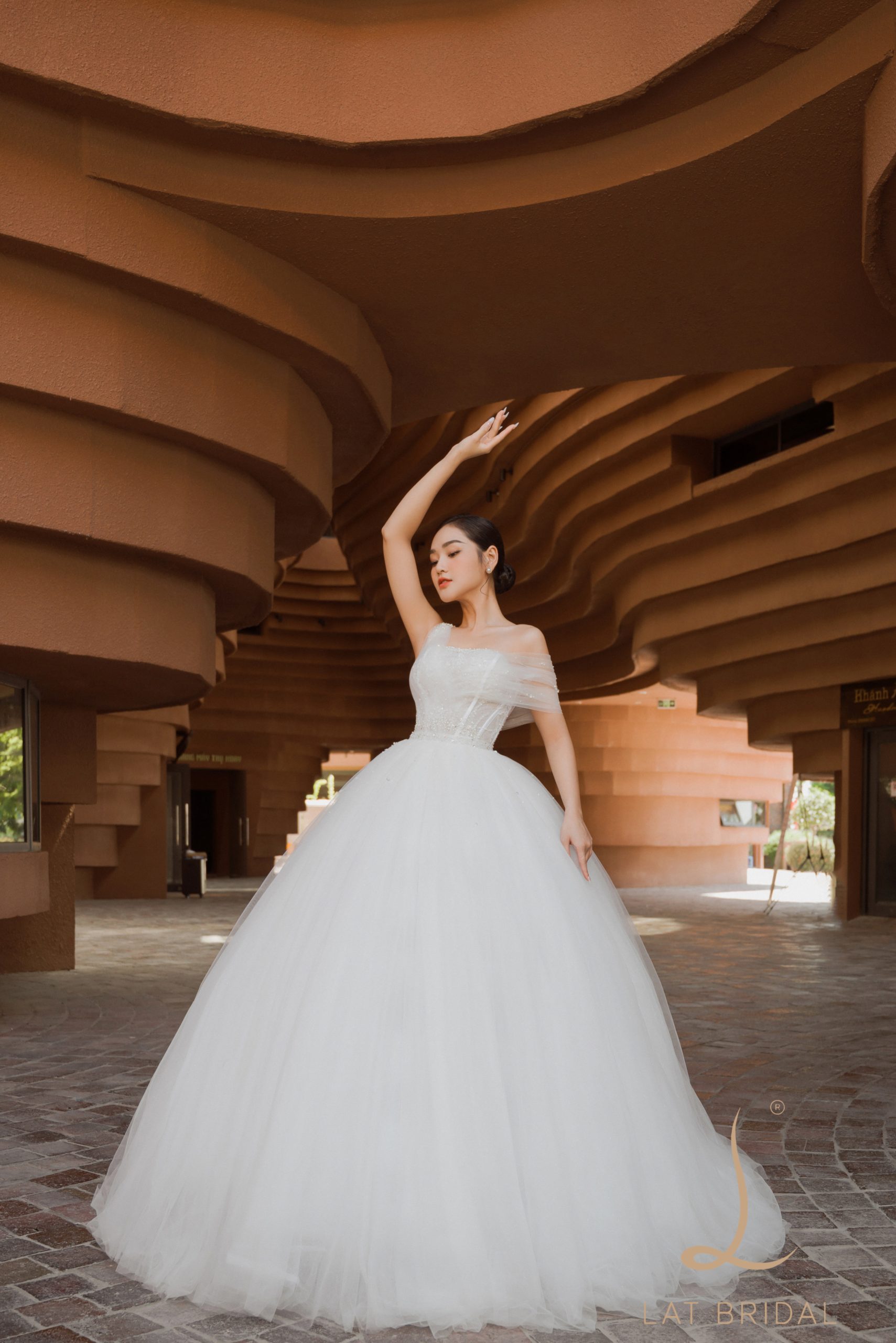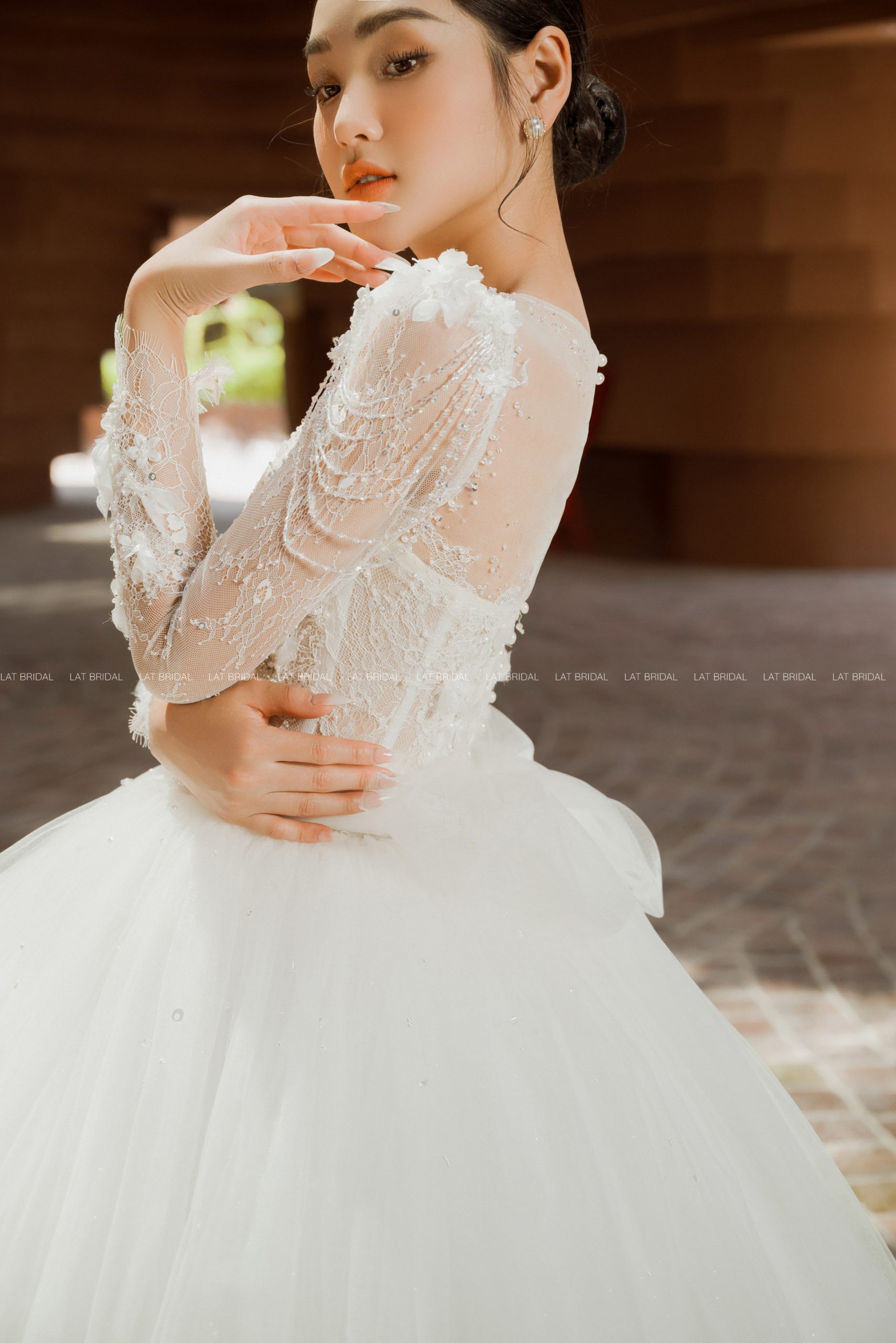 Từng đường ren tinh xảo được NTK Lan Anh Lê chăm chút tỉ mỉ, mang dấu ấn thiết kế độc quyền của LAT BRIDAL. Không chỉ là một chiếc váy cưới, đây là lời khẳng định phong cách sang trọng và cá tính riêng của nàng dâu. Váy cưới ren của LAT BRIDAL biến mỗi bước chân trên lễ đường thành khoảnh khắc đậm chất nghệ thuật – nơi sự mềm mại, kiêu sa và đẳng cấp hội tụ.