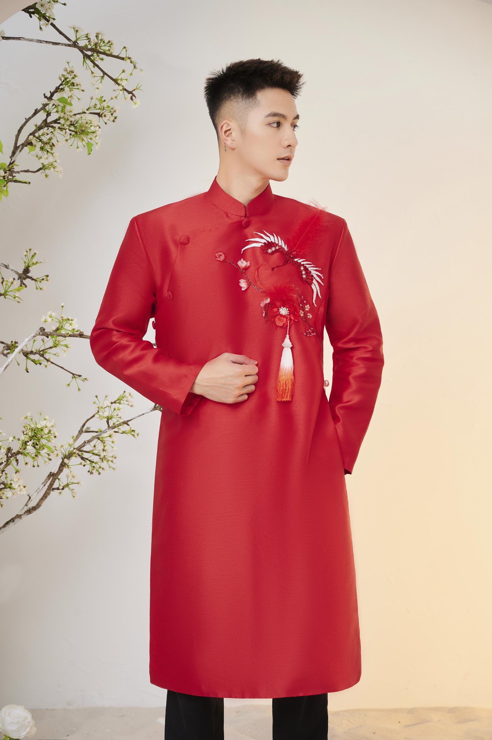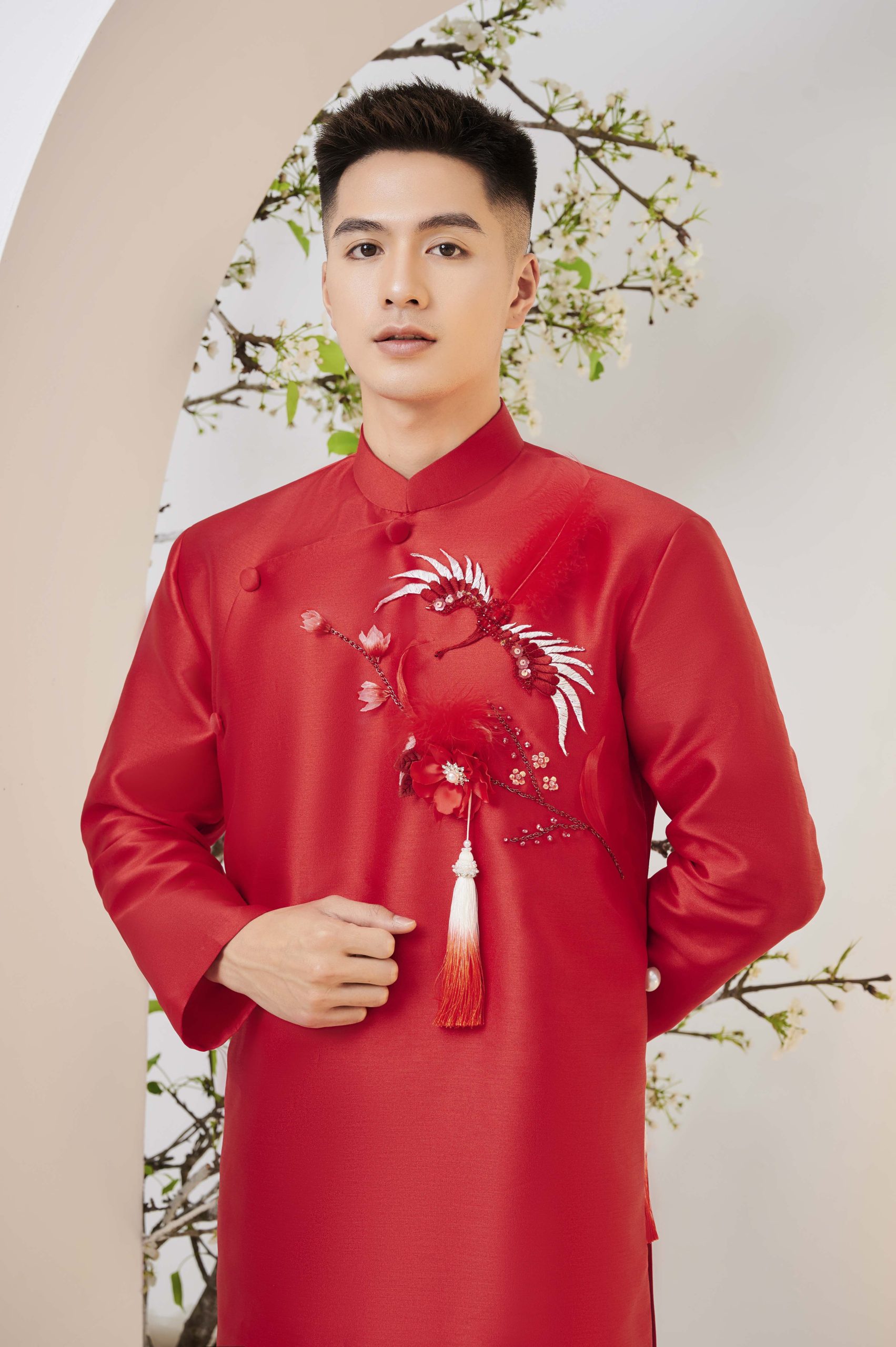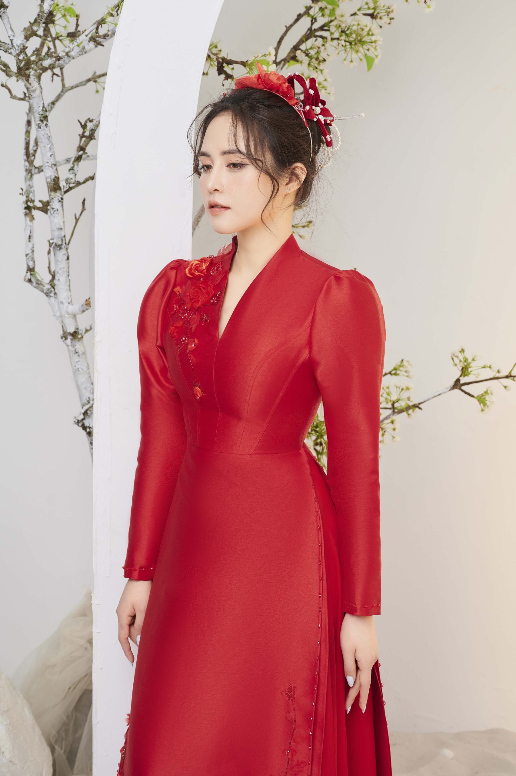 Áo dài cưới Xuân Hương – Mang hơi thở của mùa xuân, mùa của hạnh phúc và những khát khao mới đến với đôi bạn trẻ.