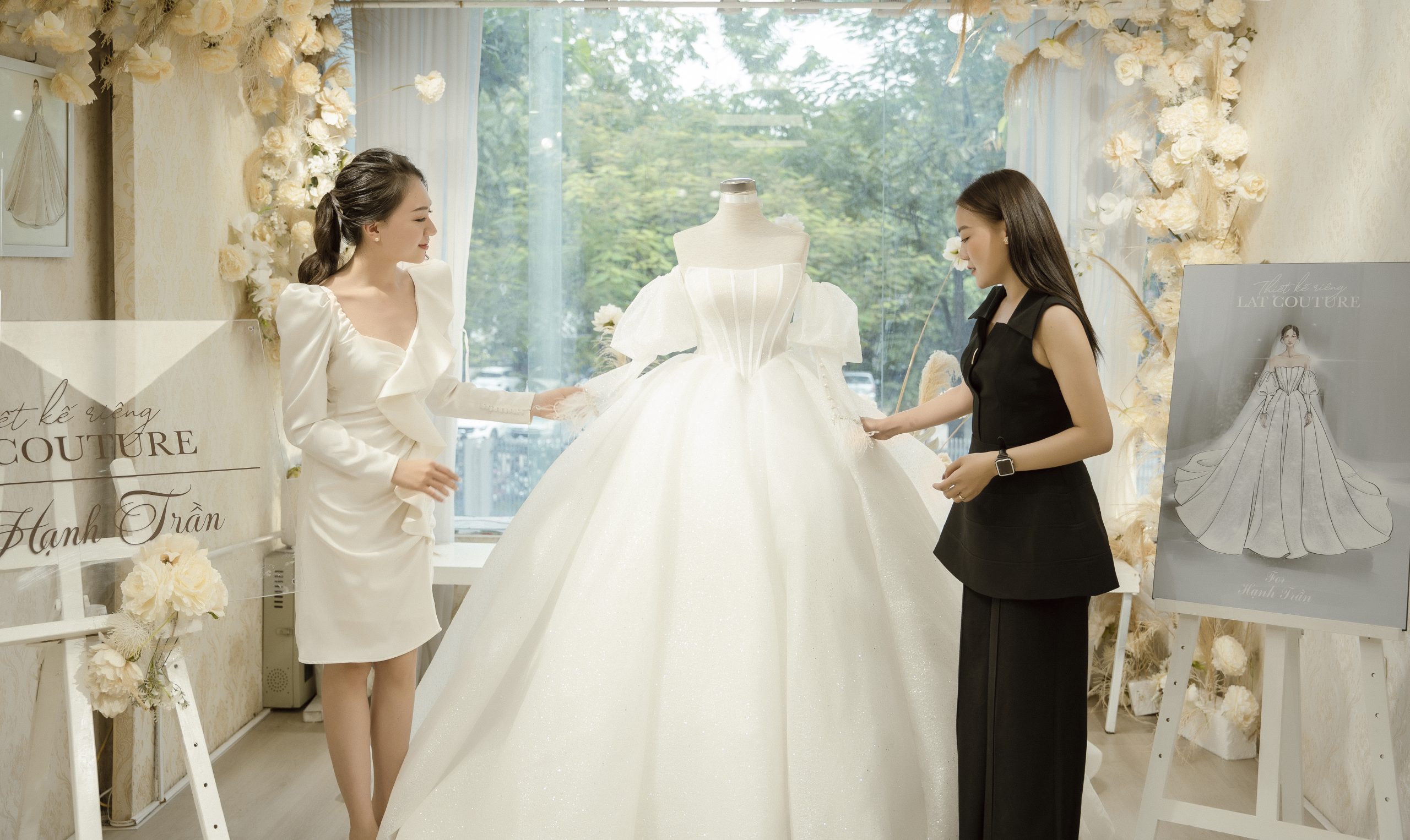 Nên ngay sau khi hoàn thiện, LAT Bridal tổ chức ngay 1 buổi nhận váy cho nàng tại showroom.