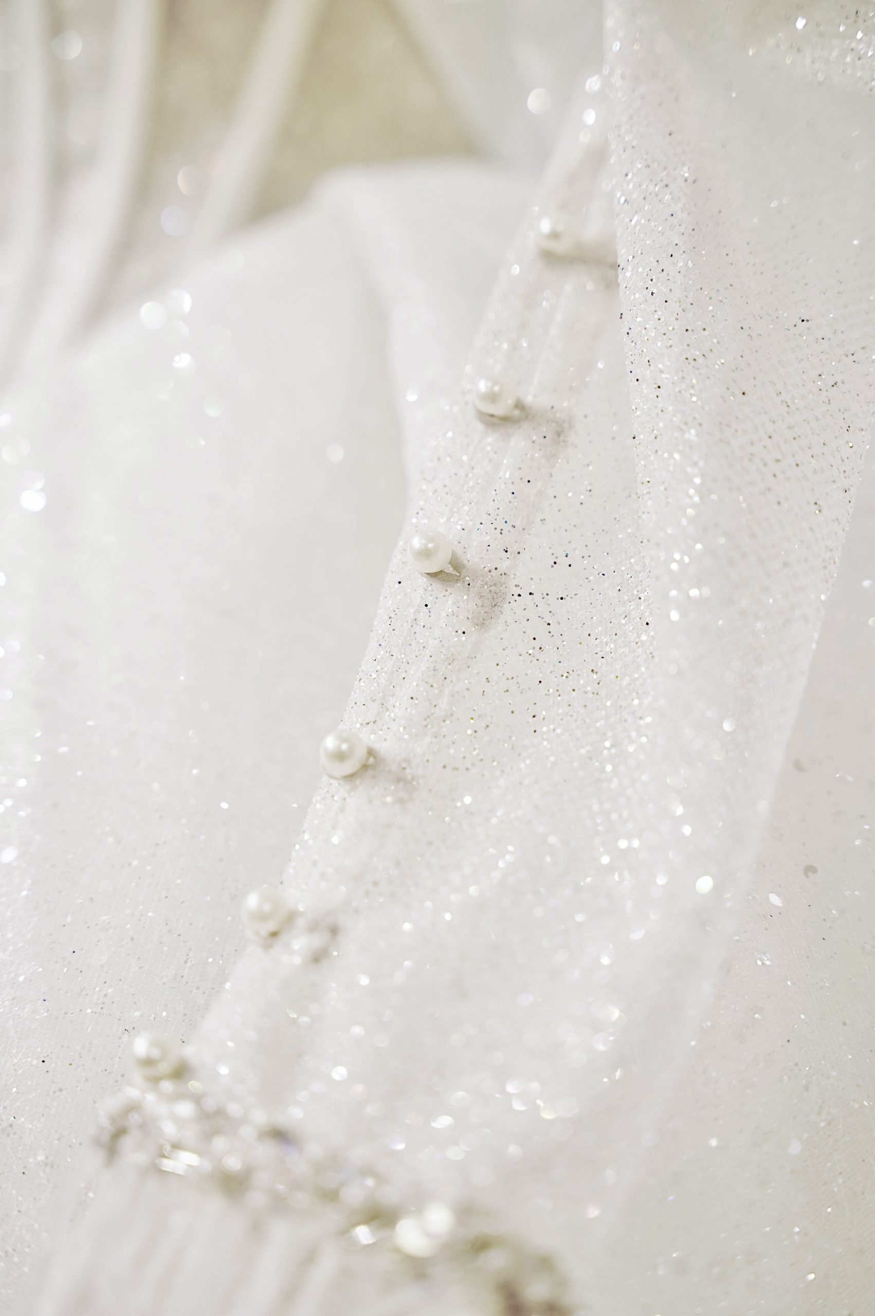 Matellic tulle là chất vải được lựa chọn cho phần tay bồng này. Chất vải có độ bắt sáng, mềm vừa phải để tạo độ bồng tự nhên cho cánh tay.